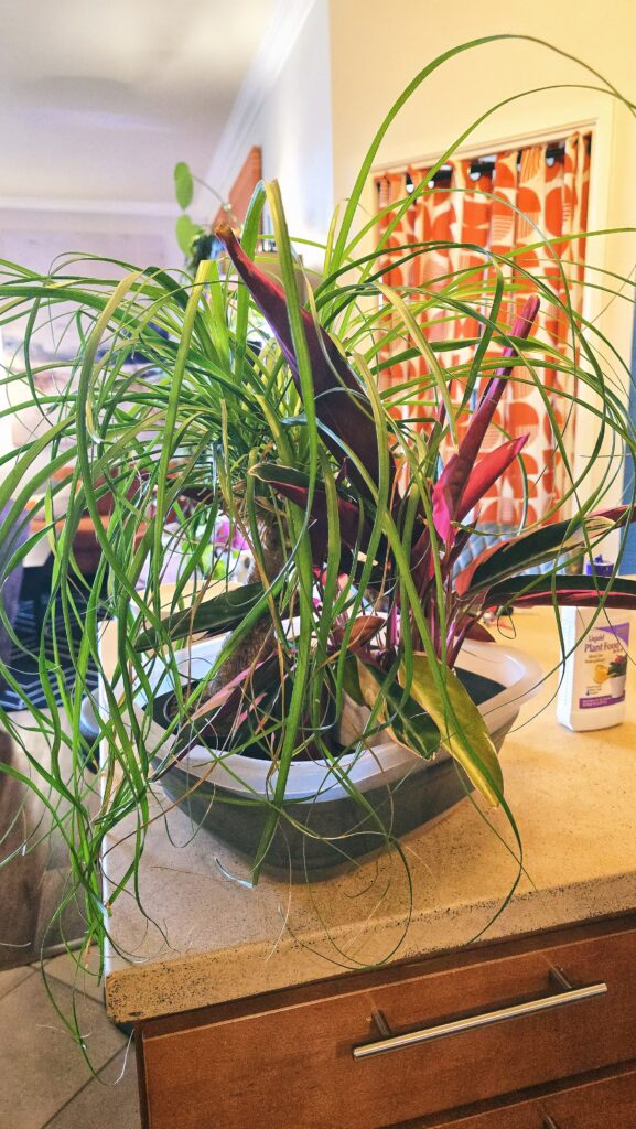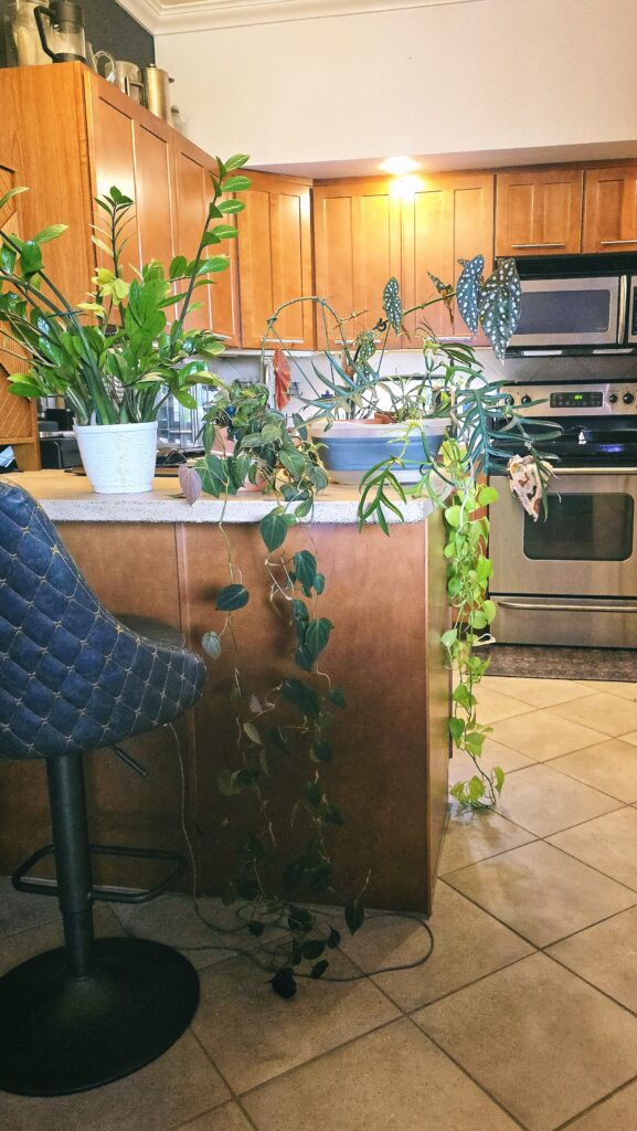Bottom watering is so much more work than walking around with the watering can. It’s often an all-day project for me, but I know it’s worth it. I also love seeing my plants together in random combinations as I gather them all to the kitchen.